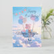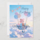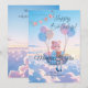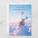Celebra un día especial con esta adorable invitación de cumpleaños pastel que presenta una escena celestial soñadora y una niña linda sosteniendo globos coloridos. Flotando suavemente sobre nubes suaves mientras sostiene un oso de peluche, la encantadora ilustración crea una atmósfera mágica y alegre perfecta para celebraciones de cumpleaños.