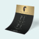 Coordina con la chica con pestañas en la tarjeta de presentación de belleza de oro falso de 1201AM. Una ilustración audaz y negra de la cara de una chica con pestañas y labios rosados es la mascota perfecta en este volante de belleza personalizable. Ideal para usar como listas de precios, menús de servicios, volantes promocionales y más. © 1201AM CREATIVO