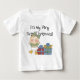 ¡Una adorable bebé con regalos de Navidad y texto que dice "Es mi primera Navidad" en las primeras camisetas de Navidad, trajes para el cuerpo, tazas, tarjetas, pegatinas, bolsas de té de vacaciones, imanes y otros primeros equipos de Navidad que puedes fácilmente personalizar antes de pedir con el nombre de tu bebé!