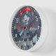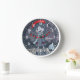 Reloj de pared gris azul dulce con un chica con una boina roja y un garland cardíaco. (Está difundiendo amor y bondad). Su lindo perro está en su lado derecho. Ideal para una habitación para niños. Personalízalo con el nombre del niño. Se han añadido marcas y números blancos para facilitar la lectura de la hora a los niños. © ArianeC Ilustraciones-Todos los derechos reservados