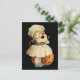La vintage postal de Ellen Clapsaddle Halloween muestra a una adorable niña tallando una manzana y tirando los hombros con calabaza detrás de ella. Reimpreso en esta postal de Halloween.