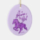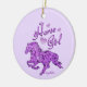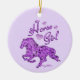Personalice este "Ornamento de Navidad de Caballo de "Uno de los Amables"! Cuenta con una silueta de caballo galopante en flores moradas, rodeada de corazones morados y la cita... "¡Chica de caballos!". Diseño De Arte Original Del Artista Kerry Miller.