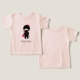 Personalizado guapa ninja chica vestida de negro pero con un arco rosado encima de su máscara de cabeza. Se puede ver la tradicional espada japonesa de katana atada a su espalda, su mango también color rosa. El chica sostiene una canasta de compras rosa.
