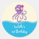 Muy lindo y colorido pegatina de favores ideal para el cumpleaños de un chica. Presenta un pulpo en colores y patrones vibrantes. Ideal para fiestas y eventos relacionados con el mar, el océano o la playa. Utilícelo para sellar sobres o favores de fiesta.