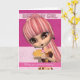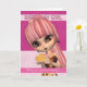 Tarjeta de cumpleaños con chica de cumpleaños, maquillaje y colores compactos, de moda y para el pelo