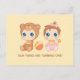 Bebés personalizados en enterizos. La de la izquierda está vestida con un traje de salto de oso marrón con una buna amarilla y una abeja minúscula. El de la derecha está vestido con un enterizo rosado con una bata amarilla y sosteniendo a un bebé sonriendo. La bola brillante descansa entre ellos.