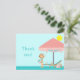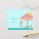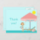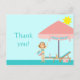 Este fiesta de la piscina cumpleaños gracias postal tiene un lindo tema de piscina. Una gran sombrilla con tumbona, radio y un chica con un balón de playa. Puede personalizar fácilmente el revés con su agradecimiento. com