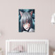 Retrato de una loca chica de gato de anime con pelo gris y orejas de gato, con una sonrisa en su cara. Este es un arte generado por IA.