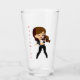 Chica de pelo largo sosteniendo el micrófono y cantando, usando pantalones negros y una tapa de cultivo, para personalizar
