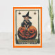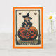Chica de Halloween de época con tarjeta Jack o'Lan