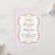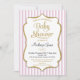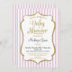 Una elegante ducha de bebé rosa y dorada con un marco de acento falso purpurina de oro y rayas rosas y blancas con texto dorado y negro. Esta moderna ducha de bebé chica es una manera muy elegante de invitar a los huéspedes a su celebración.