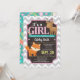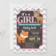 It's a Girl! Invitación a la ducha de bebé en los bosques de flores; ideal para las duchas de primavera. Presenta un fondo de patrón de chevron gris y blanco con animales de ciervo y zorro de los bosques.