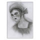 Un cierre blanco y negro de la diversión encima del bosquejo del lápiz de un chica de la aleta del art déco de los años 20 en un casquillo simple con un arco.