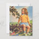 Imagen vintage de niños de ilustracion con una chica sentada en una pared de roca mirando a una madre que alimenta a su bebé pájaros en su nido. ¡La temporada de primavera está aquí!