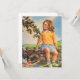 Chica de la época mirando a las aves en un árbol,