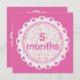 Dulce bebé de encaje rosado y corazones tema de marca de hitos mensuales de nacimiento personalizado para el crecimiento mensual documentado del bebé. Esta tarjeta representa 5 meses delante y 6 meses atrás. Todos los demás meses disponibles en otras tarjetas de invitación/invitación de esta colección. He usado una tarjeta de invitación/invitación durante 2 meses a la vez. Sólo voltea la carta. Compra tarjeta sin sobre para usar para marcadores de hitos. Usa tu propio fondo personal de tu elección para fotos.