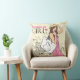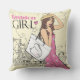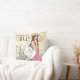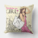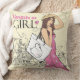 Una elegante almohada de tiro decorativa con un chica de moda de estilo boceto sobre el fondo de la ciudad.