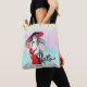 Viaje en Paris Sketch Tote Bag con un chica vestido de rojo y la Torre Eiffel. Personaliza con tu nombre o el de un amigo.