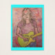 muestra la hermosa música de rock folclórico chica en vivo de un bosquejo original de lápiz y acuarela.