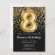 Elegante invitación para una fiesta de cumpleaños en negro y oro para un chica de 8 años con escritura elegante y divertidos globos de Relieve metalizado.