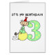 Cute Stick Figura 3ᵉʳ diseño de cumpleaños con un chica con una figura de palo con un gorra fiesta sentado en un globo y texto que dice "¡Es mi cumpleaños!". ¡Cuenta con un gran número 3!