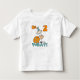 Un lindo dibujo de 2º cumpleaños con una figura de palo chica en un gorra fiesta, un enorme globo naranja y un texto que dice "¡Hoy tengo 2 años!" en camisetas de 2º cumpleaños, trajes para el cuerpo, tarjetas, pegatinas, bolsas y más.