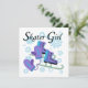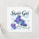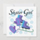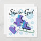 Nuestro Chica de Skater diseña camisetas, tazas, bolsos, tarjetas, almohadas, relojes de pared, keepsakes, hoodies y otros temas de patinaje con un par de patines azules y lavanda y mitones en una cuerda rodeada de muchos copos de nieve y texto que lee Chica de patinaje!