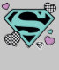 Supergirl | Echa un vistazo a esta divertida Supergirl S-Shield con corazones verde azulados, morados y a cuadros.