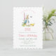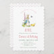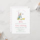 Pintado a mano Watercolor peter conejo rosa y blanco la primera invitación de cumpleaños del bebé.