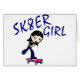 Camisetas de patinaje y regalos para chicas que incluyen a un chica de pelo negro montando una tabla de patinaje y el dicho, CHICA SK8ER. A los chicas que les encanta montar en patineta les encantarán estas costillas, sudaderas, llaveros, botones, pegatinas, imanes y más. Grandes regalos para chicas de patinaje.
