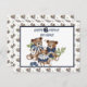Celebra el cumpleaños medio de tu bebé con esta linda tarjeta. Una familia de osos y su pequeño en un marco marino oscuro, un fondo de osos detrás de un rectángulo de la marina.