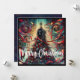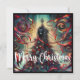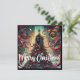 Chica escondiéndose en la fiesta gótica de la tarjeta navideña navideña juego de escondite en el árbol de navidad. Navidades de gótico coloridos