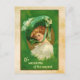 Una hermosa imagen vintage de un chica con un hermoso gorra verde para el Día de San Patricio. Perfecto para enviar a la familia y amigos.