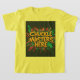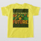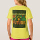 A chica le gusta usar una camiseta maestra rizada, también promueve la protección del medio ambiente escrita en el trasero.