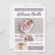 Un personalizado asequible imprimió tarjetas de foto para el anuncio de nacimiento. Este moderno diseño minimalista cuenta con 3 diseños de collage de fotos con bloques de color púrpura que se pueden personalizar cambiando el color de fondo a cualquier color. Personalízalo con el nombre del bebé, estadísticas de nacimiento y tus fotos. En el lado inverso se muestra un lindo patrón de rayas dibujadas a mano o se utiliza el espacio para agregar fotos y texto adicionales si es necesario. Haga clic en Personalizar para elegir cualquier color de fondo, agregar más fotos y tipos de letra y colores de texto personalizar para crear uno único de los anuncios de nacimiento de un bebé para su recién nacido.