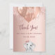 Una tarjeta de agradecimiento para un Baby Shower. Color de fondo de gradiente dorado subió. Decorada con globos y una linda niña elefante. Atrás: Personaliza y agrega tu nota de agradecimiento y nombre.