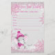Chica con juegos de ducha para bebés con elefante para bebés con un bonito traje de invierno sobre un fondo de nieve rosa de invierno. Estos folletos de juego para bebés con duchas de elefantes son de doble cara y ofrecen dos actividades diferentes.