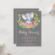 Tarjeta rosa y gris para la invitación a Baby Shower para elefantes chicas. Invitación del chica Baby Shower. Flor acuarela floral y salir. Para una mayor personalización, haga clic en el botón "Personalizar" y utilice nuestra herramienta de diseño para modificar esta plantilla.