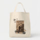 Un vintage-arte inspiró la bolsa de asas del ultramarinos con una imagen de un chica en la costa enmarcada por las cáscaras y los tragos.