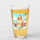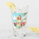 Retrato de un encantador chica en una hermosa playa tropical con sol y mar, y un clásico coche rojo en llamas, que enmarca el luminoso panorama con colores brillantes y brillantes de verano.