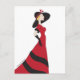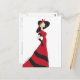 Chica en una postal de vestir rojo