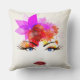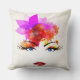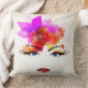 Lleve una almohada con un ilustracion facial chica floral brillante sobre un fondo transparente (blanco usado en la muestra) o color de fondo personalizado.