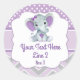 Etiqueta de Pegatina circular con un Chica elefante lindo en colores morado y rojo
