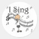 Un cantante de chica con figuras de palos con notas musicales y texto que dice "I Sing" aparece en los ítems de figuras de palos de personalizable.