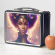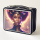 Una moderna y colorida caja de steampunk para los chicas. Personalice esta caja de almuerzo con el nombre o las iniciales.