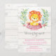 Chica Lion Baby Shower por invitación por correo. Animales de la Selva Rustica Safari. Invitación virtual de Baby Shower. Larga distancia. Tarjeta rosa y gris. Invitación del chica Baby Shower. Flor acuarela floral y salir. Fondo De Madera Rústica. Para una mayor personalización, haga clic en el botón "Personalizar" y utilice nuestra herramienta de diseño para modificar esta plantilla.