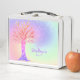 Esta caja de chicas está decorada con colores arcoiris y estrellas brillantes. Puede personalizar con un nombre y un monograma. Árbol mosaico original © Michele Davies.