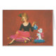 Adorable imagen vintage de Navidad de un chica y un caniche francés.