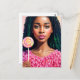Chica negro canalla en postal rosa