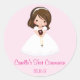 Un adorable pegatina con un chica de morena sosteniendo una biblia con un rosario colgando de sus manos. Perfecto para adornar favores, bolsas de favores o usarlas como sellos para sobres.